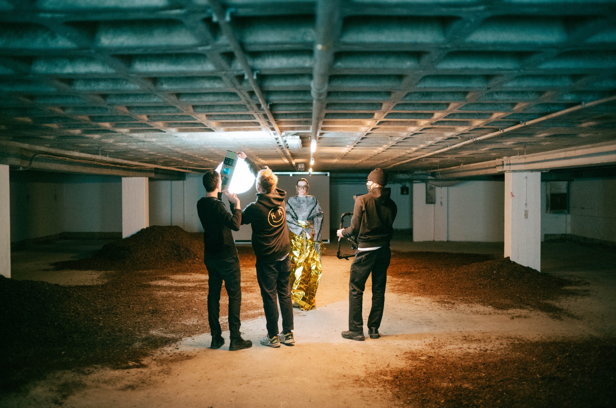 To make the digital additions sit convincingly in the footage, we also captured high‑dynamic‑range (HDR) 360 degree images at key positions across the set. By shooting multiple exposure brackets, we recorded a wide spectrum of light information – from deep shadows to bright highlights – which the 3D and compositing teams used for relighting and shading. This ensured that virtual structures attached to the garments inherited the same light direction, colour and intensity as the real scene.